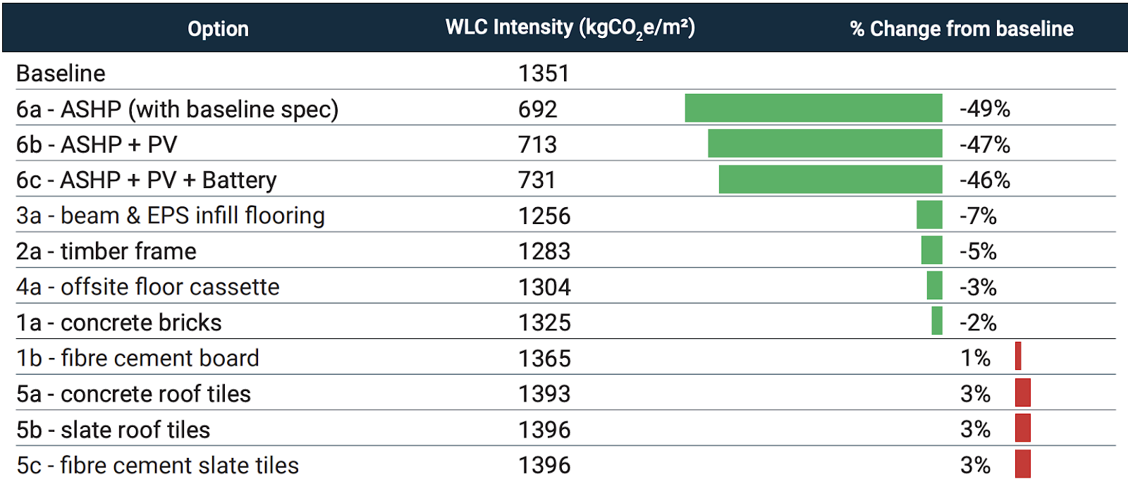 Carbon reduction options – Whole life carbon intensity